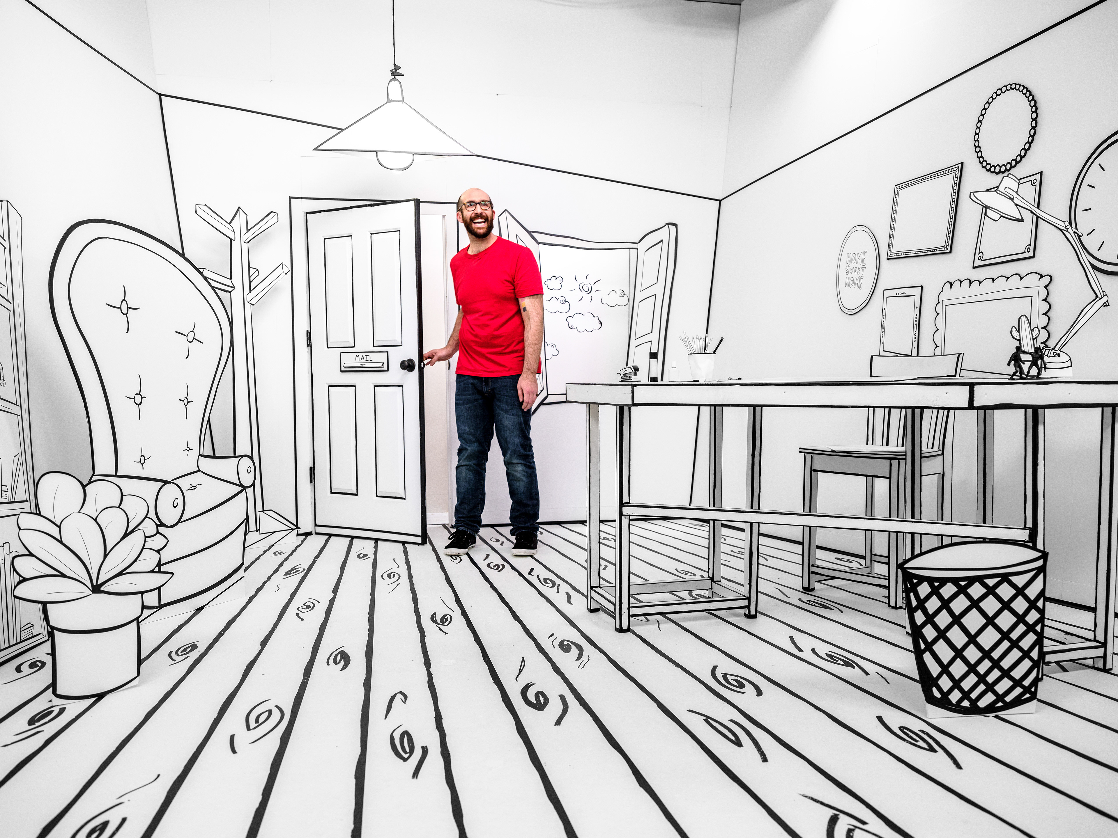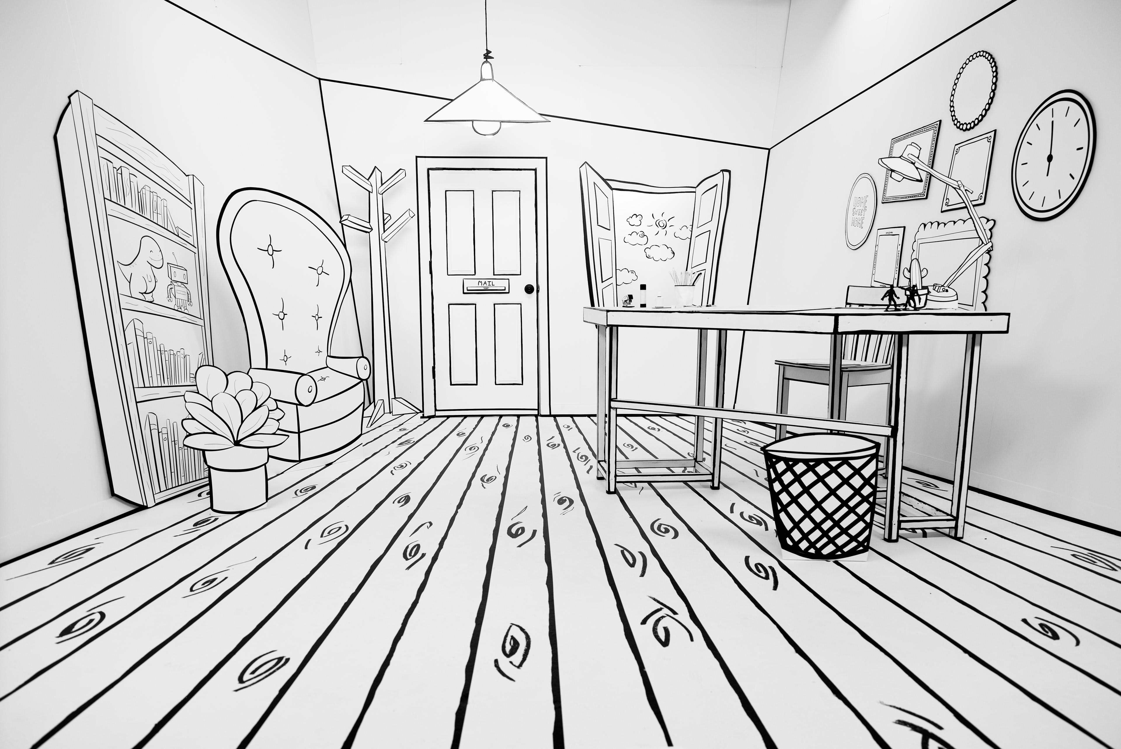 Designed and directed build of trompe l'oeil 3D 2D Set. Created to inspire and entertain Kids to draw their own comic books in this fun instructional content for NBCU Bluprint's new Kids Content.